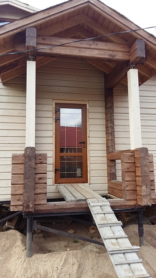 Осенью думали, какую дверь ставить на входе в дом, и в итоге решили сделать в том же стиле, что и окна (ламинация –золотой дуб, раскладка 8 мм, тонировка). Поэтому в очередной раз обратились в «Немецкие Окна». В октябре сделали заказ. Срок изготовления цветной двери вышел дольше чем обычные белые, 14 дней. В итоге получилось вроде очень симпатично. Устанавливал, Сергей и Сергей. Как и ранее, все по графику! С чувством удовлетворения от завершения очередного этапа строительства нашего дачного домика, делюсь фото . Менеджеру Ирине , Большое спасибо за отзывчивость!